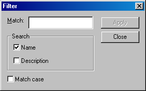 You can filter quote codes, quote code descriptions, or both. To filter only quote codes, check the Name box only. To filter only by strings found in descriptions, check the Description box only. To filter by both, check both.
