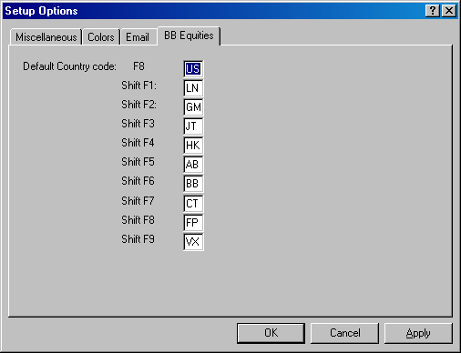 The fields on this tab contain Bloomberg location codes.
