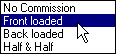 Displays a menu for the instrument in the respective section that contains the three common types of commission payment: