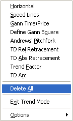 To delete all trend lines, click , or choose Delete All from the Trend Lines Menu.