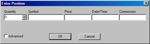 All positions consist of a quantity (the number of instruments you want to buy or sell), and an instrument symbol (stock, future, or option), and the price at which the instrument was purchased or sold. Depending on the instrument you use in a position, other information is required. For example, a future requires an expiration date, and an option requires an expiration date as well as a strike.
