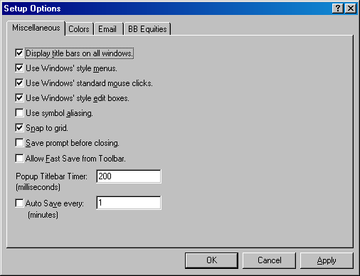 If a you desires a Windows "look and feel," you should run Aspen Graphics 4.0 with default setup options. On the other hand, if you prefer the Aspen's classic interface, you should modify the setup options.
