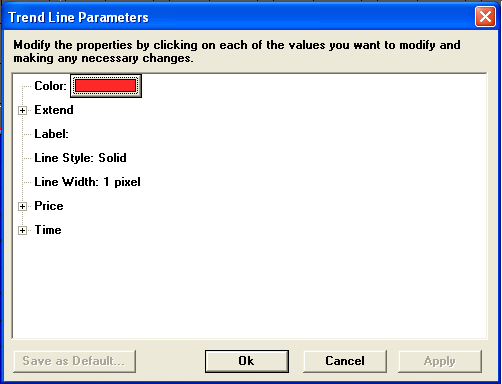 Displays the Trend Line Parameters menu for the selected trend line: